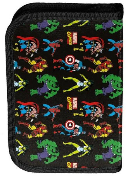 A Marvel filmekből és képregényekből jól ismert szuperhősök ezentúl az iskolába is elkísérnek, hogy mindig a legjobbat hozd ki magadból! Fekete színű tolltartó figyelemfelkeltő Marvel felirattal, színes dekorációval. Könnyen kezelhető, átlátható tolltartó, első osztályos kortól ajánlott. Belsejében két kihajtható szárny található egyik oldalon egy órarenddel, m