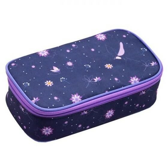 Virágos - kolibri madaras mintájú nagyobb méretű szögletes cipzáras tolltartó belső cipzáras zsebbel, középen kihajtható füllel, melynek egyik oldalán 12 gumipánt található, másik felében órarendtartó órarenddel, valamint gumipánt radírnak és hegyezőnek, valamint egy háromszögletű vonalzótartó. A mélyített belső részbe ömleszthetőek az írószerek. Mérete: 23