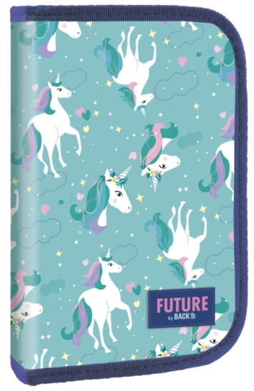 A Future by BackUp unikornisos felszerelt tolltartó teljes felszereltséggel kapható. A két, oldalra kihajtható fül rejti a 10 db mintás színes ceruzát, 7 db filctollat, 1 db golyóstollat, radírt, vonalzót és hegyezőt. A tolltartóban találsz még órarendet és szorzótáblát is. Elejét szépséges egyszarvú lovak képe díszíti.