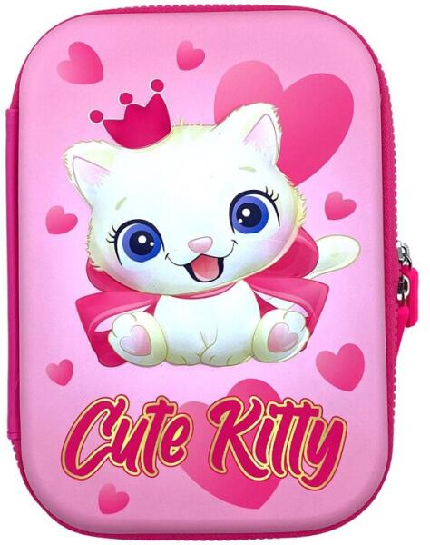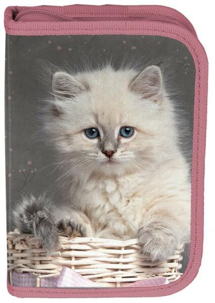 Egyrekeszes felszerelt tolltartó dekoratív pasztel színekben egy cuki kiscica fotójával. Könnyen kezelhető, átlátható tolltartó, első osztályos kortól ajánlott. Belül két kihajtható szárny található, egyik oldalon egy órarenddel, másik oldalon egy szorzótáblával. A felszerelt tolltartó tartalmaz: 9 db színes ceruzát, 7 db filctollat, 1 db golyóstollat, 1 grafit ceruz