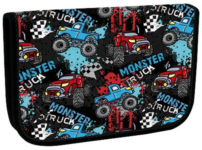 Elsősorban idősebb diákok számára alkalmas, fiús motívummal ellátott tolltartó. A tolltartón belül egy kisebb cipzáras zseb, két kisebb zsebecske és akár 20 ceruza, toll vagy filctoll tárolására szolgáló rugalmas fül található. A fedél alatt további írószerek tárolására van elegendő hely. A tolltartó nagy fogantyúval ellátott cipzárral zárható az egyszerű keze