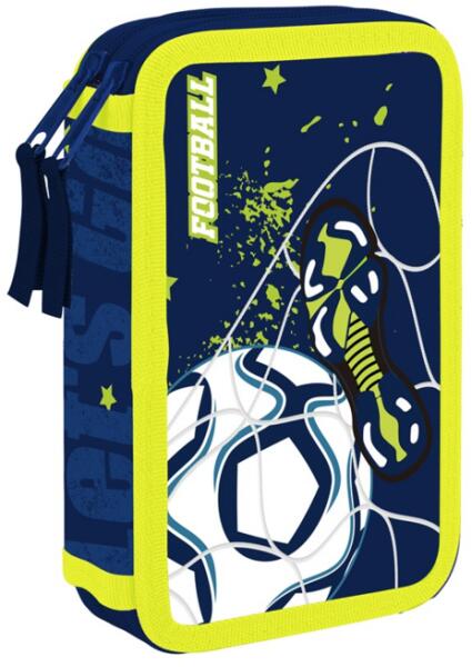 A terjedelmes, egycipzáras tolltartóban játékosan elfér minden iskolai írószer. Tartalmaz: egy nagy zseb cipzárral a felső fedél alatt a belső szárnyon az egyik oldalon 5 hurok található az írószerek számára a belső szárnyon egy 10 cm-es háromszög tartó, a másik oldalon 4 hurok bombáknak nagy szabad hely zsírkréták, kaparók stb. tárolására. Anyaga: poliészter