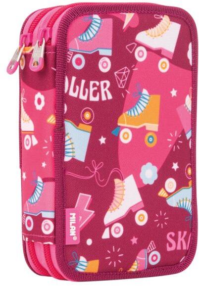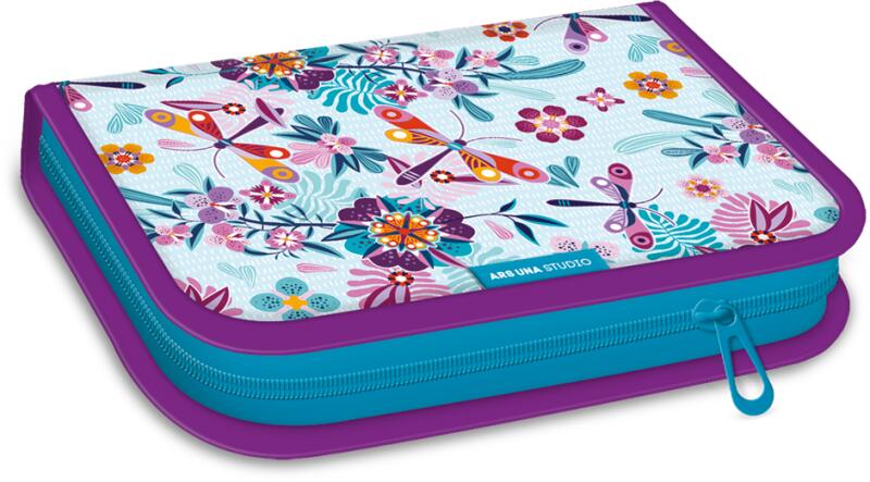 Színes virágos mintájú bedobálós tolltartó nagyoknak, felsősöknek, mely középen kétoldalas gumipántos elválasztóval rendelkezik, így a rajta lévő 10 gumipánt alá rendszerezhetőek az írószerek. Az ovális formájú tolltartó dupla cipzáras. Belül egyterű, középen egy kétoldalas gumipántos elválasztó található a ceruzák és írószerek rögzítésére, valamint eg
