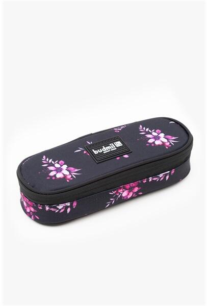 Budmil 10120083 egyrekeszes fekete-rózsaszín mintás tolltartó egyrekeszes, kisméretű tolltartó alapanyaga vízlepergető belül cipzáros, hálós zsebbel kihajtható ceruzatartó 8 ceruzahellyel