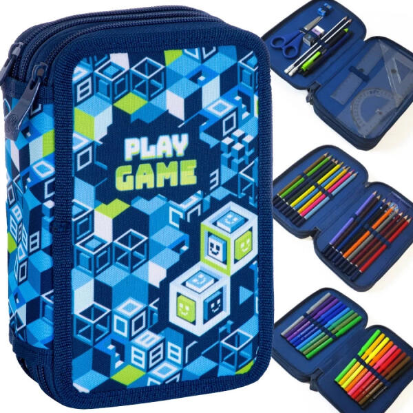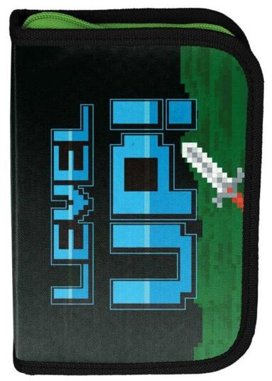 A Game kihajtható tolltartó - Level up belsejében két kihajtható fül található, ezeken lehet a sok-sok ceruzát, filctollat, radírt a gumis fülecskék segítségével elrendezni. Az iskolában szükséges összes eszköznek (ceruzák, radír, hegyező, vonalzó) megvan benne a helye. A tolltartón vagány videojátékos minták láthatók.