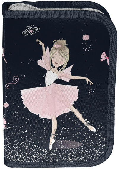Balerinás kihajtható tolltartó felszerelt TIARA - PasoTolltartó lányoknak A minőségi tolltartó kis balerinák számára készült, a gyönyörű rózsaszín ruhás balett táncos körül hercegnős motívumok és finomságok szerepelnek. A balerinás kihajtható tolltartó fekete-rózsaszín színvilága elegáns és trendi. A tolltartó mintás belsejében gumipántokkal rögzíthetőek a