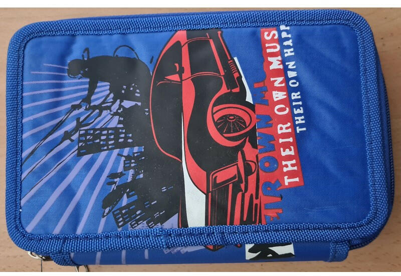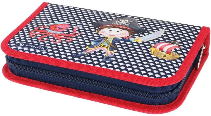 Jó minőségű töltött tolltartó kalózos mintával. Tartalma: 14 db. színes filctoll, 8 db. színes ceruza (hatszögletű), 2 db. hatszögletű ceruza, 1 db. műanyag hegyező, 1 db. radír, 1 db. 16 cm-es egyenes vonalzó, 1 db. háromszög vonalzó, 1 db. golyóstoll, 1 db. órarend. Mérete: 20,3 x 14 x 3,5 cm Gyártó: Herlitz