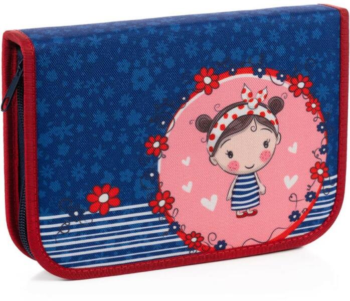 Little Betty motívummal ellátott iskolai tolltartó lányoknak, töltetlen, két kihajtható, gumis kialakítású füllel az írószerek, vonalzók és radír tárolásához. Belseje szürke anyaggal borított. Átlátszó fólia alatt van egy órarend. Méret: 19,5 x 13 x 3,5 cm Gyártó: Stil