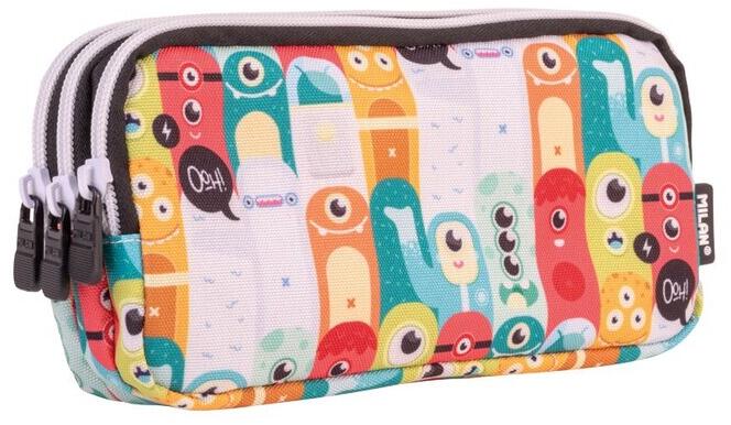Trendi nagyobb méretű szögletes cipzáras tolltartó belső cipzáras zsebbel, középen kihajtható füllel, melynek egyik oldalán 12 gumipánt található, másik felében órarendtartó órarenddel, valamint gumipánt radírnak és hegyezőnek, valamint egy háromszögletű vonalzótartó. A mélyített belső részbe ömleszthetőek az írószerek. Tolltartó mérete: 23x6x12,5 cm. Anyag: