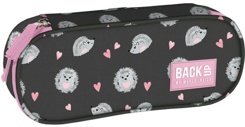 Kedves süni figurák és szívecskék dekorálják a praktikus tolltartót. A rózsaszín cipzár és a nagyméretű BackUP felirat táblája kiemelkedik a tolltartó sötét alapszínéből. Praktikus, egyrekeszes, cipzárral záródó tolltartó. A BackUP egyrekeszes tolltartó a következőket tartalmazza:- tágas rekesz a szükséges tartozékoknak- 4 rögzítő fül tollak/ceruzák számára