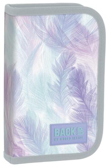 A BackUp felszerelt kihajtható tolltartó - Colour Feathers teljes felszereltséggel kapható. A két oldalra kihajtható fül rejti a 10 db színes ceruzát, 7 db filctollat, 1 db golyóstollat, 1 db grafit ceruzát, radírt, vonalzót és hegyezőt. A pasztell színvilágú tolltartót aranyos kis tollak díszítik.