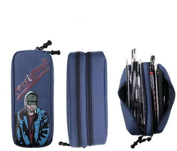 Vagány két rekeszes vászon tolltartó. Mérete : 20 x 9 x 7 cm Színe : Sötétkék Anyaga : vászon A tolltartó üres, a képen szereplő tartalom nem tartozék !