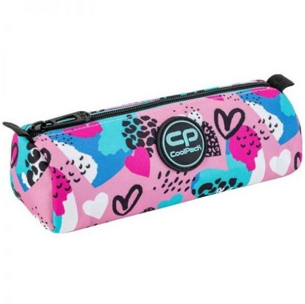 Cool Pack Tutti Heart márkájú nagy, henger formájú bedobálós tolltartó, mely cipzárral záródik. Mérete: 20x7x8,5 cm. Írószerek, filctollak kényelmesen elférnek benne. Lányos tolltartó színe: kék szíves mintával.
