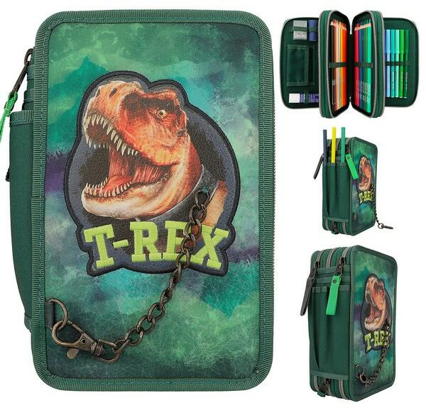 Dino World 3 Emeletes Töltött Tolltartó T-Rex mintával.
