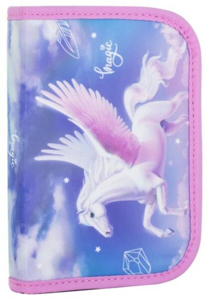 Varázslatos dekoráció az égbolton ragyogó unikornissal, ami azonnal magára vonja a kislányok figyelmét. Pasztell kék, lila és rózsaszín mesés színkombinációban készült tolltartó kislányoknak. A kihajtható tolltartóban gumipántok segítségével rögzítheted az írószereket. Kialakítása: 6+8+8 gumipánt ceruzáknak, 3 szélesebb gumipánt radírnak, hegyezőnek és vonalz