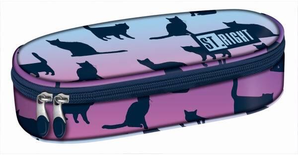 St. Right ovális cicás tolltartó - Black Cats Cicás egy rekeszes tolltartó lányoknak A divatos St. Right ovális tolltartó a cica rajongó lányoknak készült, sötét színű fényes cicafejekkel mintázva a fekete anyagot. A praktikus kialakítású tolltartó elsősorban a nagyobb lányok számára lesz könnyedén kezelhető. Az ovális tolltartó dupla cipzárral záródik. Belsejébe