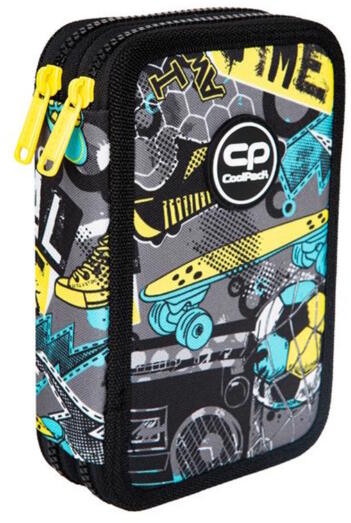 A Coolpack - Jumper felszerelt emeletes tolltartó - Goal Time teljes felszereltséggel kapható. A kiváló minőségű, focilabda, gördeszka és egyéb sportszer mintával rendelkező tolltartó két nagy rekesze lehetővé teszi, hogy a tanuló szépen és kényelmesen rendszerezze a kellékeit. A tolltartó tartalma: 1 db golyóstoll, 1 db grafit ceruza, radír, hegyező, vonalzó, 12 db szí