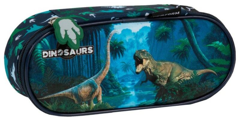 Tedd izgalmassá a hétköznapokat is ezzel a vagány dinoszauruszos tolltartóval!Az egyrekeszes tolltartó a következőket tartalmazza:- tágas rekesz a szükséges tartozékoknak- 4 rögzítő fül tollak/ceruzák számára és egy hálós zárt zseb- felső részén 5 rögzítő tollak/ceruzák számára- dupla cipzáras csúszka és dekoratív szíves medálMérete: 20,5 x 8,5 x 5 cmSúly: 9
