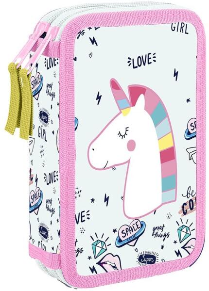 Termék részletekEmeletes tolltartó, unicornus motívummal, töltés nélkül. A tolltartó 25 db gumihurkot tartalmaz az összes írószer és a tanításhoz szükséges apróság tárolására. A tolltartó erős cipzárral rendelkezik, nagy húzással a könnyű kezelés érdekében. Az egyik emelet átlátszó rekesszel van felszerelve a heti menetrendhez. Méret: 195x125x45mm, Súly: 0,186kg