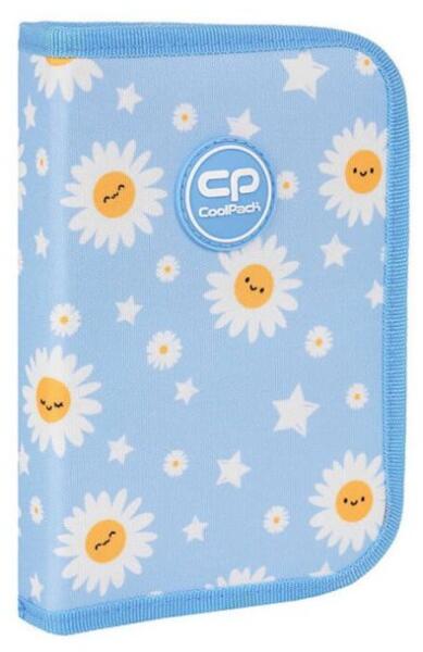 Cool Pack márkájú kihajthatós tolltartó virágos mintával, lányoknak világoskék alapon. A mindennapos írószerkészlet kényelmesen elfér benne, grafit és színesceruzák, radír, kisvonalzó. A tolltartó üres állapotban kerül szállításra, mint ahogyan azt a képen is látod. Két klapnis (két kihajtható füllel) - belül gumipántos, kívül átlátszó órarendtartó zsebbel