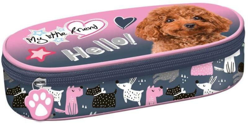 My little friend ovális tolltartó - Hello dog (668340) egyterű belsejében van egy kihajtható fül, melynek egyik oldalán kis cipzáras zseb, másikon gumifülek találhatóak. A tolltartóban elfér az összes írószer, amire az iskolásoknak szüksége van. A kutyás mintás tolltartó praktikus kiegészítője a nagylányok iskolatáskájának.