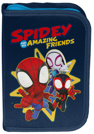 A Marvel kihajtható tolltartó - Spidey - Go Webs Go (SP24SS-P001BW) tolltartón menő, pókemberes minta látható. A tolltartó belsejében két kihajtható fül található, ezeken lehet a sok-sok ceruzát, filctollat, radírt a gumis fülecskék segítségével elrendezni. Minden szükséges iskolai eszköznek megtalálod benne a helyét. Hozzá illő iskolatáskával és tornazsákkal össze