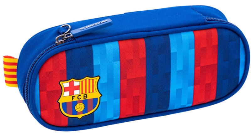 FC Barcelona focis ovális tolltartó (503023041) a kisiskolások iskolai szettjének vagány kiegészítője. Belsejében van egy kihajtható fül, melyen ceruzatartó gumifülek vannak, ezek segítségével tudod elrendezni írószereidet. A menő tolltartóban az összes írószer elfér, amire az iskolásoknak szüksége van.