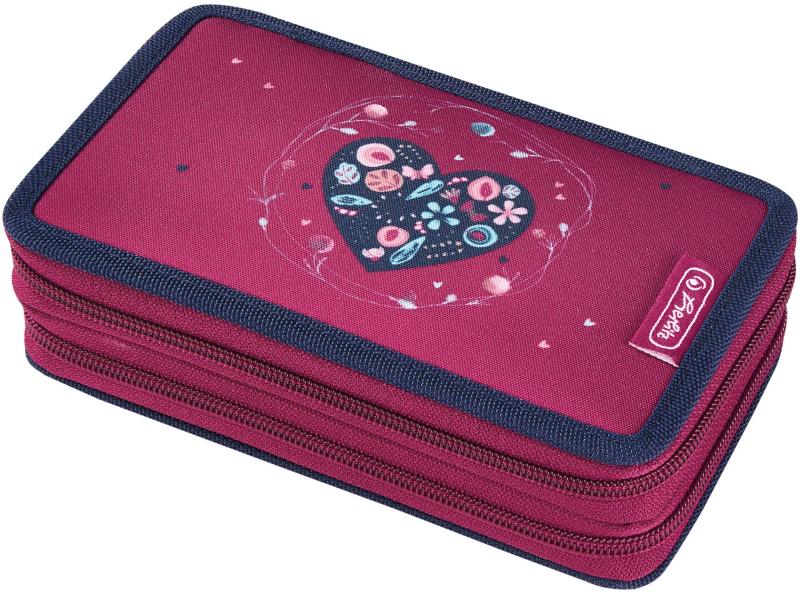 Egyemeletes tolltartó két kihajtható füllel. A gumis tárhelyeknek köszönhetően összesen huszonegy toll, ceruza és filctoll fér el benne. A három szélesebb fogantyúban vonalzó, körző vagy olló is elfér. Két nagyobb tárhely a radír és a ceruzahegyező számára. A tolltartó bélelt, így megbízhatóan védi az összes íróeszközt. Minőségi cipzárral záródik, nagy, erg