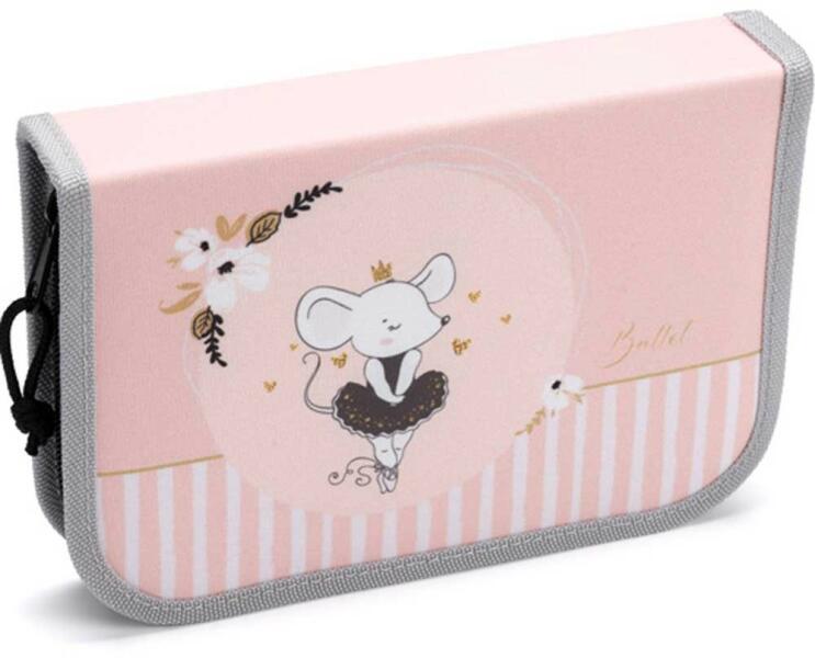 Egyrészes tolltartó lányoknak 23 különböző méretű gumiszalaggal a nagyobb ceruzák vagy tollak, vonalzó, hegyező és radír kényelmes tárolásához. A két belső szárny átlátszó zsebbel rendelkezik a külső oladlán, az órarend vagy egyéb apró dokumentumok számára. Belső oldalán egy kis zseb található, amely patenttal zárható. Újdonság : az egyrészes tolltartók ci
