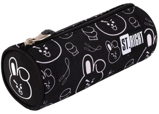 Ez a St. Right - Clever Bunny henger alakú tolltartó (665585) menő, fekete színösszeállításával és nyuszis mintájával az iskolások kedvence lesz. Egy nagy tágas rekesszel rendelkezik, melyben elfér minden szükséges írószer.