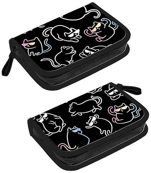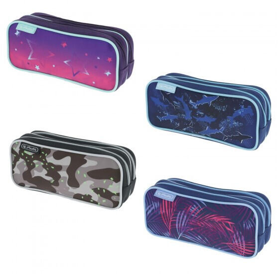 A nagy, ovális alakú, 1 cipzáras tolltartó a következőket tartalmazza: 4 hurokkal ellátott fül tollak és ceruzák számára - a másik oldalon hálós zseb található cipzárral a felső fedél alatt 5 hurok található zsírkrétának vagy jelölőnek szabad, nagy hely az iskolai és írószernek az alsó részen Anyaga: poliészter
