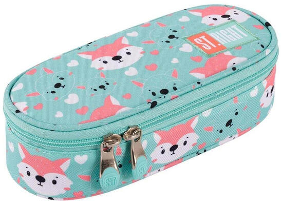 St. Right - Lovely Foxy ovális tolltartó (664762) aranyos rókás mintával. A két cipzáras rekeszben elfér az összes írószer, amire az iskolásoknak szüksége van.