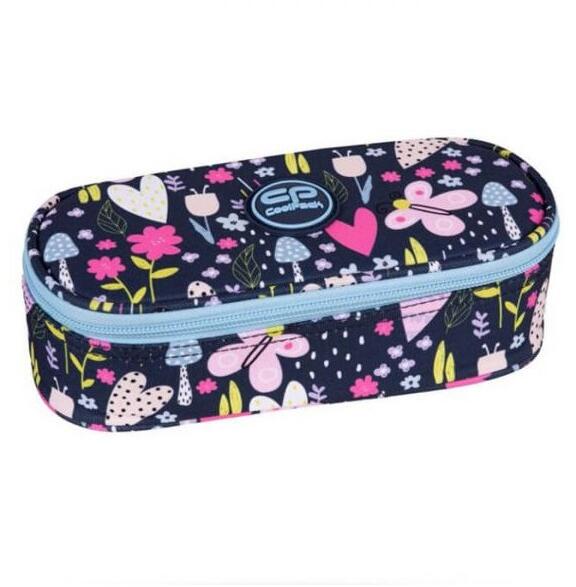 Cool Pack márkájú tolltartó lányoknak. Tavaszias mintázata annyira kedves, máris odavarázsolja a rét hangulatát. Az ovális formájú cipzáras tolltartó közepén van egy klapni, melynek mindkét oldalán 5-5 gumipánt található ceruzáknak, tollaknak. Az egyterű részébe bedobálhatóak az írószerek, kiegészítők. A lányos tolltartó üres, a képen látható eszközök illus