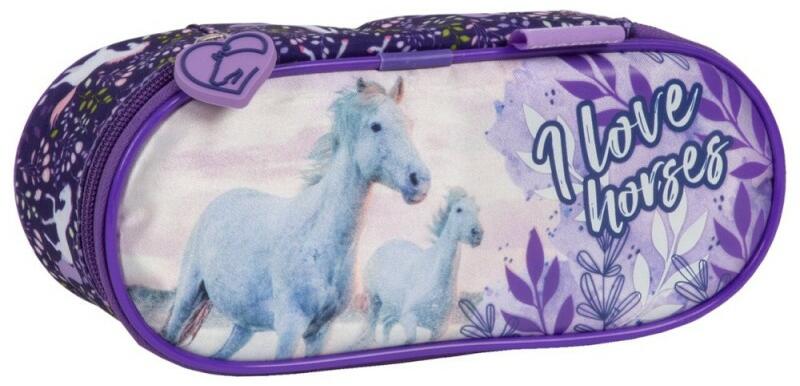 A romantikus hangulatú tolltartó egy vágtázó fehér lovat ábrázol. Ha szeretsz sok időt a természetben tölteni, vonz a lovak világa, akkor ez a pasztell lila színvilágú tolltartó biztosan tetszeni fog. Az egyrekeszes tolltartó a következőket tartalmazza:- tágas rekesz a szükséges tartozékoknak- 4 rögzítő fül tollak/ceruzák számára és egy hálós zárt zseb- felső ré