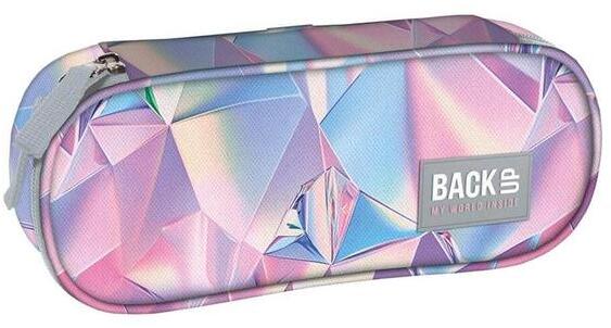 BackUp Pasztell ovális tolltartó - Gyémántok divatos kék és rózsaszín színösszeállításban, gyémánt mintával díszítve. Egyterű belsejében praktikus felhajtható fül is található, melynek egyik oldalán kis cipzáras zseb van, másikon gumifülek tollnak, ceruzának. Az összes írószer elfér benne, amire az iskolában szükséged lehet.