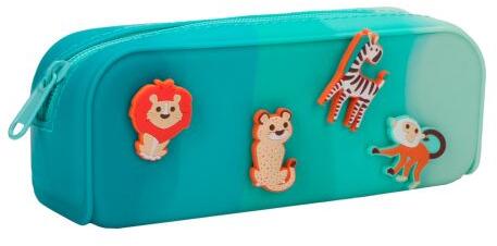 Irodaszer tok a kicsiknek. tetején gumiállatokkal strapabíró anyagból és 1 cipzárral méret megfelelő gyermek hátizsákokhoz vagy iskolákba. aktatáskák