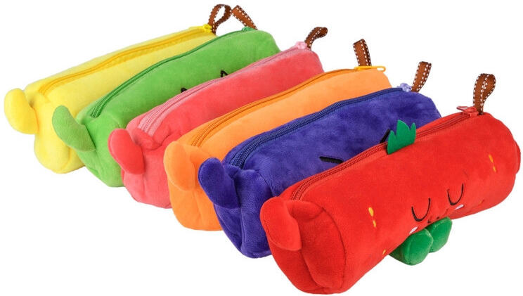 Többféle változatban. Kérjük hogy a megjegyzésbe tüntesse fel, hogy melyik változatot kéri. Praktikus bedobós, finom plüss tolltartó zippzárral a szivárvány minden színében. Minden tolltartó 1 gyümölcsöt formáz meg. A hengeres tolltartók a legnépszerűbbek közé tartozik. Könnyen lehet használni, kevesebb helyet foglal, és sok írószer tárolható benne. Cipzáros zseb