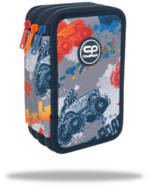 Elsősorban idősebb diákok számára alkalmas, fiús motívummal ellátott tolltartó. A tolltartón belül egy kisebb cipzáras zseb, két kisebb zsebecske és akár 20 ceruza, toll vagy filctoll tárolására szolgáló rugalmas fül található. A fedél alatt további írószerek tárolására van elegendő hely. A tolltartó nagy fogantyúval ellátott cipzárral zárható az egyszerű keze