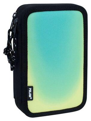Tolltartó MILAN Sunset (sunset) 2 szintes, töltve. A tolltartó tartalma: 18 db marker kúpos heggyel 12x háromszög alakú színes ceruza 1x golyóstoll (kék) 1x HB grafit ceruza 1x 15 cm-es vonalzó 1x AFILA reszelő 2x szintetikus gumi Súly: 0,48 kg „Ripstop szövet a hátoldalon: könnyű, repedés- és szakadásálló. Speciális technikát alkalmaz, amely rendszeres időközönként v