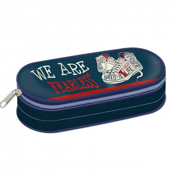 Elsősorban idősebb diákok számára alkalmas, fiús motívummal ellátott tolltartó. A tolltartón belül egy kisebb cipzáras zseb, két kisebb zsebecske és akár 20 ceruza, toll vagy filctoll tárolására szolgáló rugalmas fül található. A fedél alatt további írószerek tárolására van elegendő hely. A tolltartó nagy fogantyúval ellátott cipzárral zárható az egyszerű keze