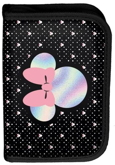 A Minnie Mouse felszerelt tolltartó - Holo Black teljes felszereltséggel kapható. A két, oldalra kihajtható fül rejti az 1 db grafit ceruzát, az 1 db golyós tollat, a 9 db színes ceruzát, a 7 db filctollat, radírt, hegyezőt és 2 db vonalzót. Elejét egy cuki minnie ábrája díszíti.