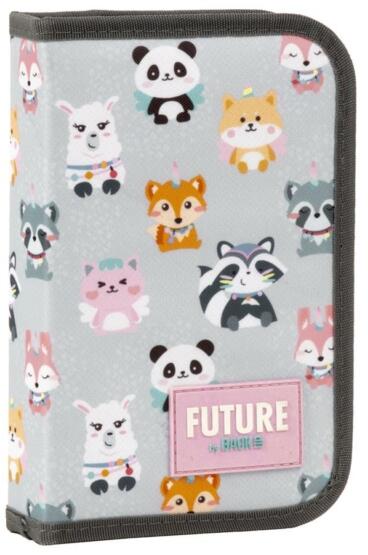 A Future by BackUp felszerelt tolltartó - Cute animals teljes felszereltséggel kapható. A két, oldalra kihajtható fül rejti a 10 db mintás színes ceruzát, 7 db filctollat, 1 db golyóstollat, radírt, vonalzót és hegyezőt. A tolltartóban találsz még órarendet és szorzótáblát is. Elejét cuki kisállatok képe díszíti.