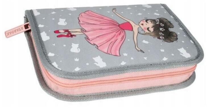 A Balerina kihajtható tolltart most teljes felszereltséggel kapható. A két, oldalra kihajtható fül rejti az 1 db grafit ceruzát, az 1 db golyós tollat, a 10 db színes ceruzát, a 12 db filctollat, radírt, hegyezőt és vonalzót. A tolltartóban találsz még órarendet és szorzótáblát is. A tolltartó fedelét egy tündéri balerina kislány, hátoldalát egy cuki, fehér cica dísz