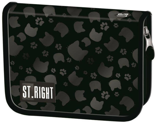 A St. Right - Black Cat kihajtható tolltartó (664632) tolltartón cuki cicák láthatóak. A tolltartó belsejében két kihajtható fül található, ezeken lehet a sok-sok ceruzát, filctollat, radírt a gumis fülecskék segítségével elrendezni. Minden szükséges iskolai eszköznek megtalálod benne a helyét. Hozzá illő iskolatáskával és tornazsákkal összeállíthatod egyedi iskol