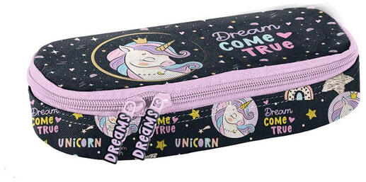 Unikornis ovális tolltartó - Dream Come True (PP24UR-013) belseje egyterű, praktikus cipzáras zseb is található benne, így elfér a tolltartóban az összes írószer, amire az iskolásoknak szüksége van. Aranyos, unikornis mintájával az iskolatáskák trendi kiegészítője.