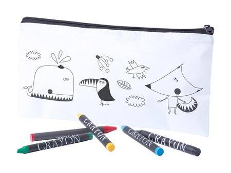 Színezhető, cipzáras tolltartó gyerekeknek, 5 db zsírkrétával. SKINGA