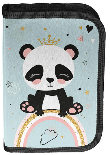 A Panda kihajtható tolltartó - Szivárvány (PP24PN-P001BW) tolltartón cuki, panda látható. A tolltartó belsejében két kihajtható fül található, ezeken lehet a sok-sok ceruzát, filctollat, radírt a gumis fülecskék segítségével elrendezni. Minden szükséges iskolai eszköznek megtalálod benne a helyét. Hozzá illő iskolatáskával és tornazsákkal összeállíthatod egyedi i