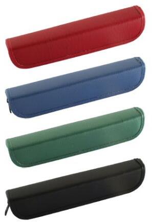 Ökológiai bőr anyagból készült egyszerű tok 2 tollnak, közepes méretű, cipzárral záródik. Színek: kék, barna, fekete, zöld.