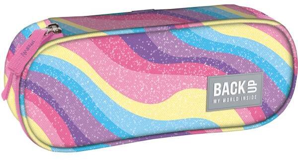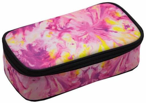 Különleges nagyobb méretű szögletes cipzáras tolltartó belső cipzáras zsebbel, középen kihajtható füllel, melynek egyik oldalán 12 gumipánt található, másik felében órarendtartó órarenddel, valamint gumipánt radírnak és hegyezőnek, valamint egy háromszögletű vonalzótartó. A mélyített belső részbe ömleszthetőek az írószerek. Lányos tolltartó mérete: 23x6x12