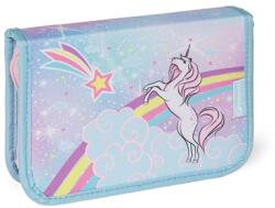 Rainbow Kitty cicás ovális tolltartó a lányok iskolai szettjének egyedi kiegészítője. A fekete alapszínű tolltartó minden oldalán szivárvány színű cicák láthatók. Belsejében van egy kihajtható fül, melyen ceruzatartó gumifülek vannak, ezek segítségével tudod elrendezni írószereidet. A divatos Rainbow Kitty ovális tolltartóban az összes írószer elfér, amire az isk